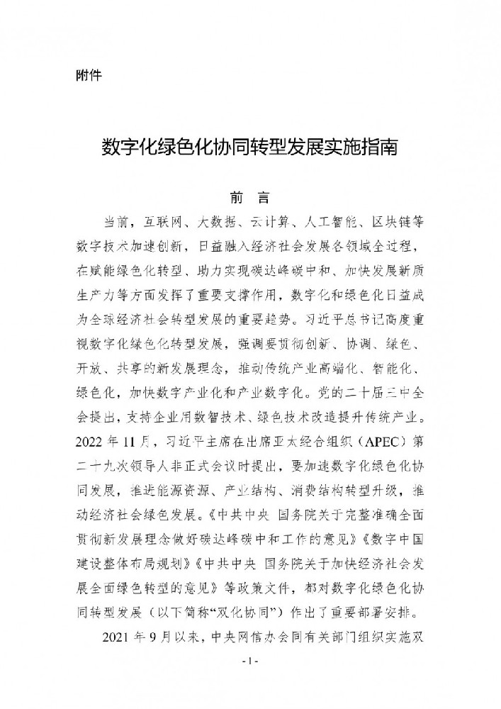 關于印發(fā)《數(shù)字化綠色化協(xié)同轉(zhuǎn)型發(fā)展實施指南》的通知