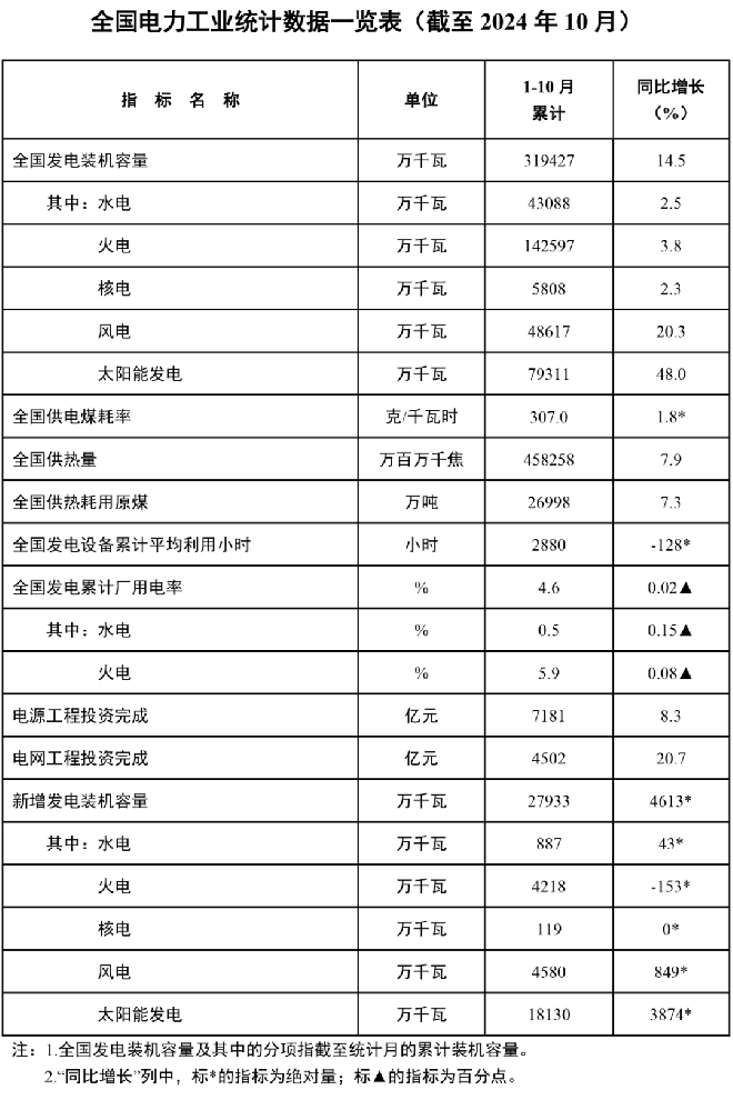 11月22日,國家能源局發(fā)布1-10月份全國電力工業(yè)統(tǒng)計數(shù)據(jù)。