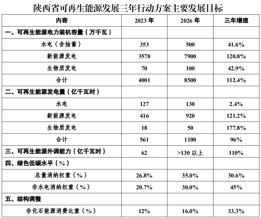 日前,陜西省發(fā)改委印發(fā)《關于印發(fā)陜西省可再生能源發(fā)展三年行動方案(2024—2026)的通知》,初步規(guī)劃預計到2026年省內(nèi)新能源裝機規(guī)模達79GW,增速120.8%。
