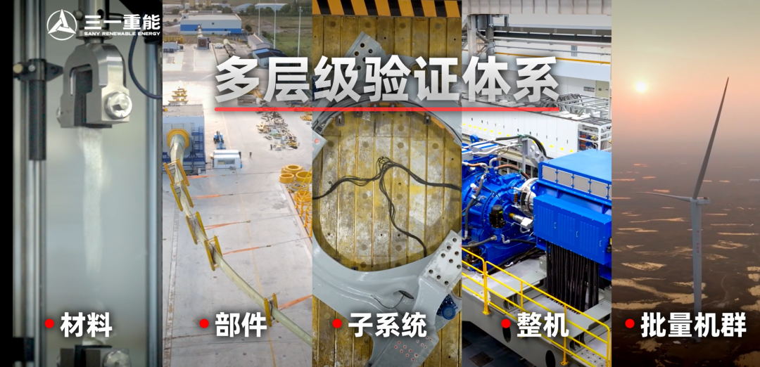 為保障機組長達(dá)20年服役生涯中的可靠性,三一重能自建四大風(fēng)電試驗基地,建立起涵蓋風(fēng)機材料、部件、子系統(tǒng)、整機及批量機群的全方位驗證體系,依靠嚴(yán)苛的試驗標(biāo)準(zhǔn),將風(fēng)場驗證前移,充分論證部件與整機可靠性,鍛造風(fēng)機“強健體魄”。