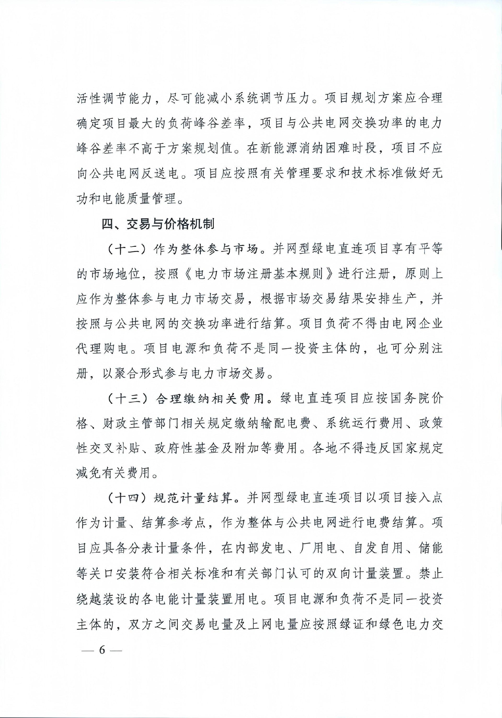 在交易與價格機制方面,《通知》明確,作為整體參與電力市場。并網(wǎng)型綠電直連項目享有平等的市場地位,按照《電力市場注冊基本規(guī)則》進行注冊,原則上應(yīng)作為整體參與電力市場交易,根據(jù)市場交易結(jié)果安排生產(chǎn),并按照與公共電網(wǎng)的交換功率進行結(jié)算。項目負(fù)荷不得由電網(wǎng)企業(yè)代理購電。項目電源和負(fù)荷不是同一投資主體的,也可分別注冊,以聚合形式參與電力市場交易。