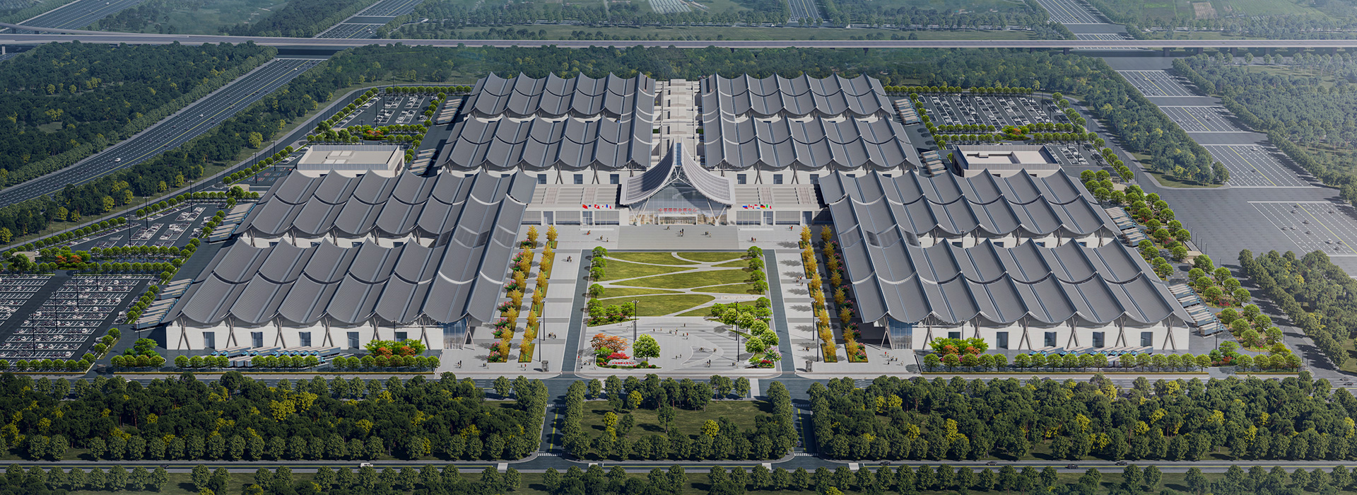 展館一期由德國(guó)GMP建筑師事務(wù)所設(shè)計(jì),主要包括14個(gè)標(biāo)準(zhǔn)展廳,2個(gè)多功能展廳和1個(gè)登錄廳,占地面積約為938畝,總建筑面積31.31萬(wàn)平方米,室內(nèi)展覽面積12.8萬(wàn)平方米,室外展覽面積10萬(wàn)平方米,2023年10月開(kāi)館試運(yùn)營(yíng)。2025年5月將全部建成投用。
